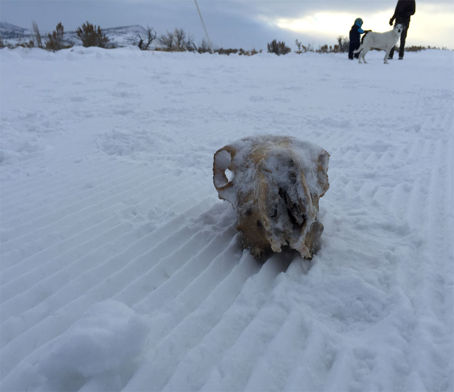 Only one day of off-leash dogs being legal in Round Valley and the death and destruction has already started. We found this skull on the trail. My 3 year old and I debated whether it was dinosaur or human…